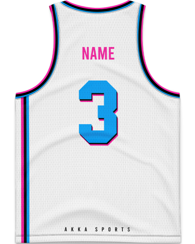 Son design inspiré du style rétro Miami associe des tons blanc, rose et bleu pour une vibe estivale unique.